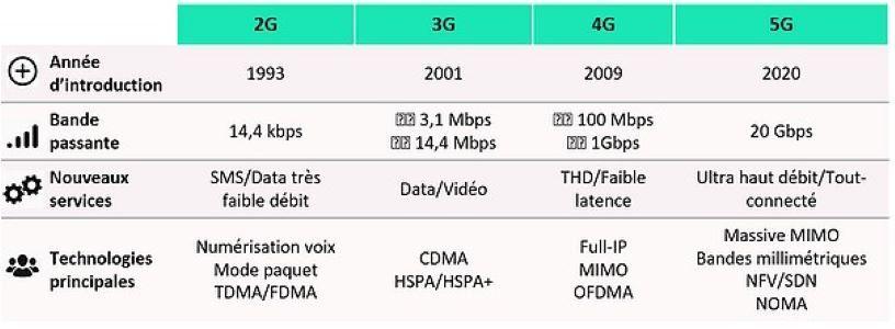 Figure : Synthèses des évolutions de la 2G à la 5G