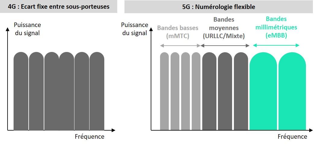 Figure : Différence de multiplexage en 4G et 5G
