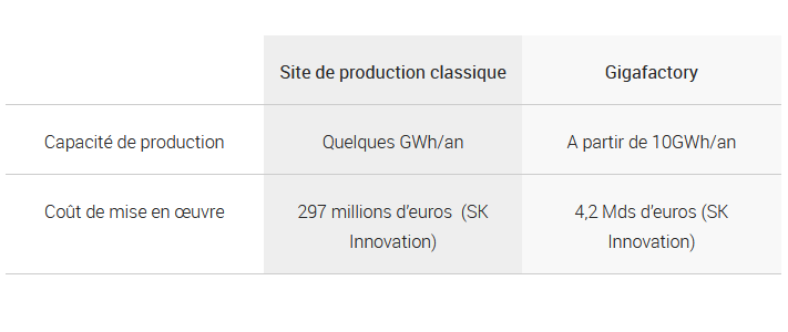 Illustration 7 : Comparaison entre un site de production classique de batteries électriques et une gigafactory.