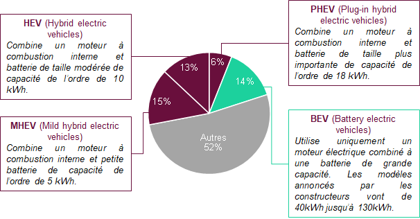 La position dominante de la batterie lithium-ion sur le marché de l’automobile électrique devient alors motrice de l’évolution du marché des batteries électriques.