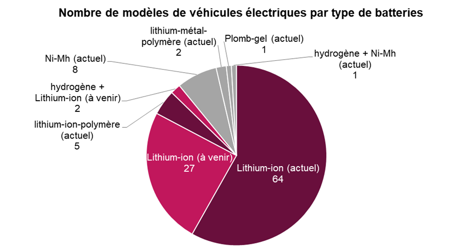 Illustration 3 : Nombre de modèles de véhicules électriques par type de batteries. Source fiche d’identité des véhicules : https://www.automobile-propre.com/voitures