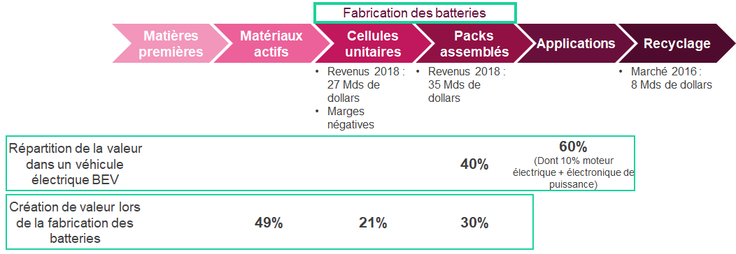 Illustration 4 : Chaine de valeur de la batterie électrique : où se situe la valeur ?