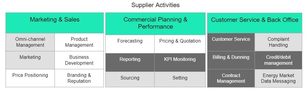 When applying the assessment criteria from the previous paragraph to the core processes of a utility firm, we can create an overview of where to start with RPA. We created a heat-map of an energy supplier and trading firm based on their high-level business processes (see figure 3). Without being exhaustive and strongly generalised, this at least gives us some focus in identifying low hanging fruit for RPA projects. Please note that we focus here only on the utilities’ core processes while there are also significant opportunities for RPA projects in the support functions (e.g. IT, HR, Procurement and Finance).