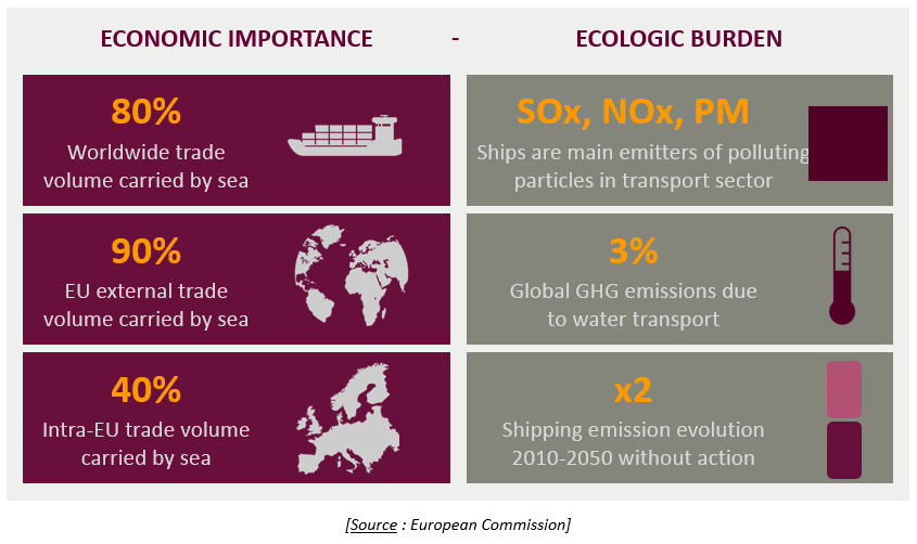 The EU has stipulated the ambition to realize a modal shift to move respectively 30% and 50% of European road freight travelling over 300 km towards rail or waterborne transport by 2030 and 2050. Another goal is to reduce EU CO2 emissions from maritime transport by 40% by 2050 compared to 2005 levels.