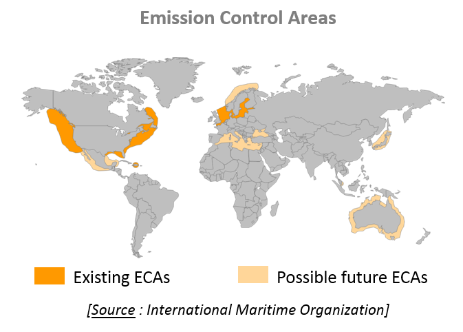 Currently, fuel consumption in ECAs is estimated at approximately 30-50 million tons of fuel per year, which will increase as ECAs are expanded. The mostly likely candidates are along Asian shores, but public authorities worldwide are setting up their own requirements [v]. These ECA emission limits, especially for sulphur, are currently the main driver for the adoption of alternative fuels. Eventually, economies of scale will result in more competitive prices for low-sulphur fuels and lead to an increase in demand.